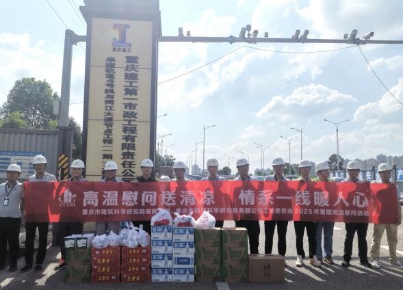 88午,重慶設計集團所屬子企業重慶市建筑科學研究院有限公司黨委委員、副總經理、總工程師張京街帶隊赴監理咨詢公司承擔監理的軌道4號線與兩江大道節點工程開展高溫慰問活動,為堅守一線的職工送去清涼與關懷,勉勵員工在各自崗位上真抓實干,為公司發展做貢獻。