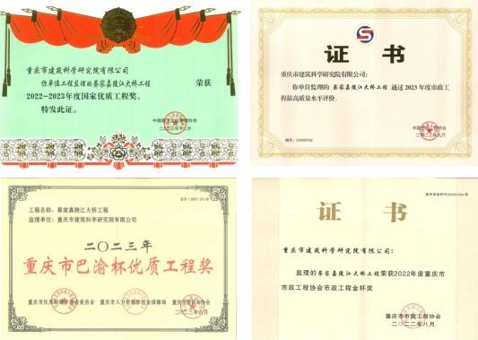 國(guó)家優(yōu)質(zhì)工程獎(jiǎng)設(shè)立于1981年,是經(jīng)國(guó)務(wù)院確認(rèn)的我國(guó)工程建設(shè)領(lǐng)域設(shè)立最早、規(guī)格最高,跨行業(yè)、跨專(zhuān)業(yè)的國(guó)家級(jí)質(zhì)量獎(jiǎng),除獲此獎(jiǎng)項(xiàng)外,蔡家嘉陵江大橋還曾獲得市政工程最高質(zhì)量水平評(píng)價(jià)(原國(guó)家市政工程金獎(jiǎng))、重慶市市政工程金杯獎(jiǎng)、三峽杯優(yōu)質(zhì)結(jié)構(gòu)工程獎(jiǎng)、巴渝杯優(yōu)質(zhì)結(jié)構(gòu)工程獎(jiǎng)等多項(xiàng)榮譽(yù),樹(shù)立起建橋豐碑。