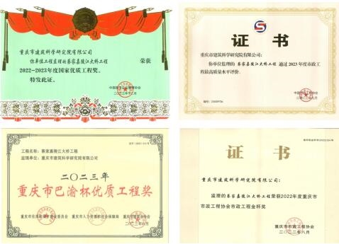 在蔡家嘉陵江大橋修建過程中,項目部創(chuàng)新性監(jiān)理工作,建立健全全壽命質(zhì)量控制體系,采用無人機進行項目智慧管理,利用數(shù)據(jù)信息對施工現(xiàn)場進行統(tǒng)一調(diào)配;采用智慧工程——建設工程協(xié)同管理平臺,將工程項目全生命周期中的信息模型、數(shù)據(jù)信息、管理資料等集合顯示處理,實現(xiàn)全過程協(xié)同管理,顯著提高工作效率;率先實行了二維碼唯一標識見證取樣管理制度,實現(xiàn)每一組試件、每一份報告均可溯源。項目獲評國家優(yōu)質(zhì)工程獎、市政工程最高質(zhì)量水平評價(原國家市政工程金獎)、重慶市市政工程金杯獎、三峽杯優(yōu)質(zhì)結(jié)構工程獎、巴渝杯優(yōu)質(zhì)結(jié)構工程獎、重慶市智慧工地示范項目。