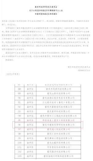 6月16日,從市經濟信息委傳來喜訊,重慶設計集團所屬子企業(yè)重慶市建筑科學研究院有限公司獲2024年重慶市專精特新中小企業(yè)稱號。