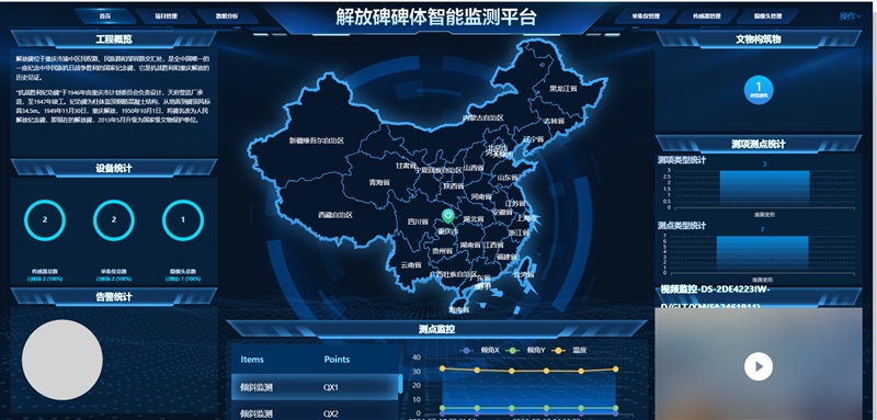 本系統將互聯網、物聯網、云計算等技術應用到監測中,全天候、全方位地監測文物狀態,及時發現文物本體的變形情況,并為文物本體建立檔案卡,電子化存儲相關治理、修繕、檢測、評估等檔案資料,對監測數據、管理流程與檔案資料等進行數據分析,為文物本體保護、日常管理提供科學依據,后續還可擴展煙霧火源報警、視頻入侵、人臉識別、文物破壞識別等多種監測手段。同時,該平臺還將實現可視化展示、綜合風險評估預警,動態監測數據變化過程,并根據各監測參數變形對文物本體影響程度分配不同權重,實現動態分析。若系統判定為風險,將自動發送預警信息至監測人員,實現安全、有效、實時監測文物本體安全。